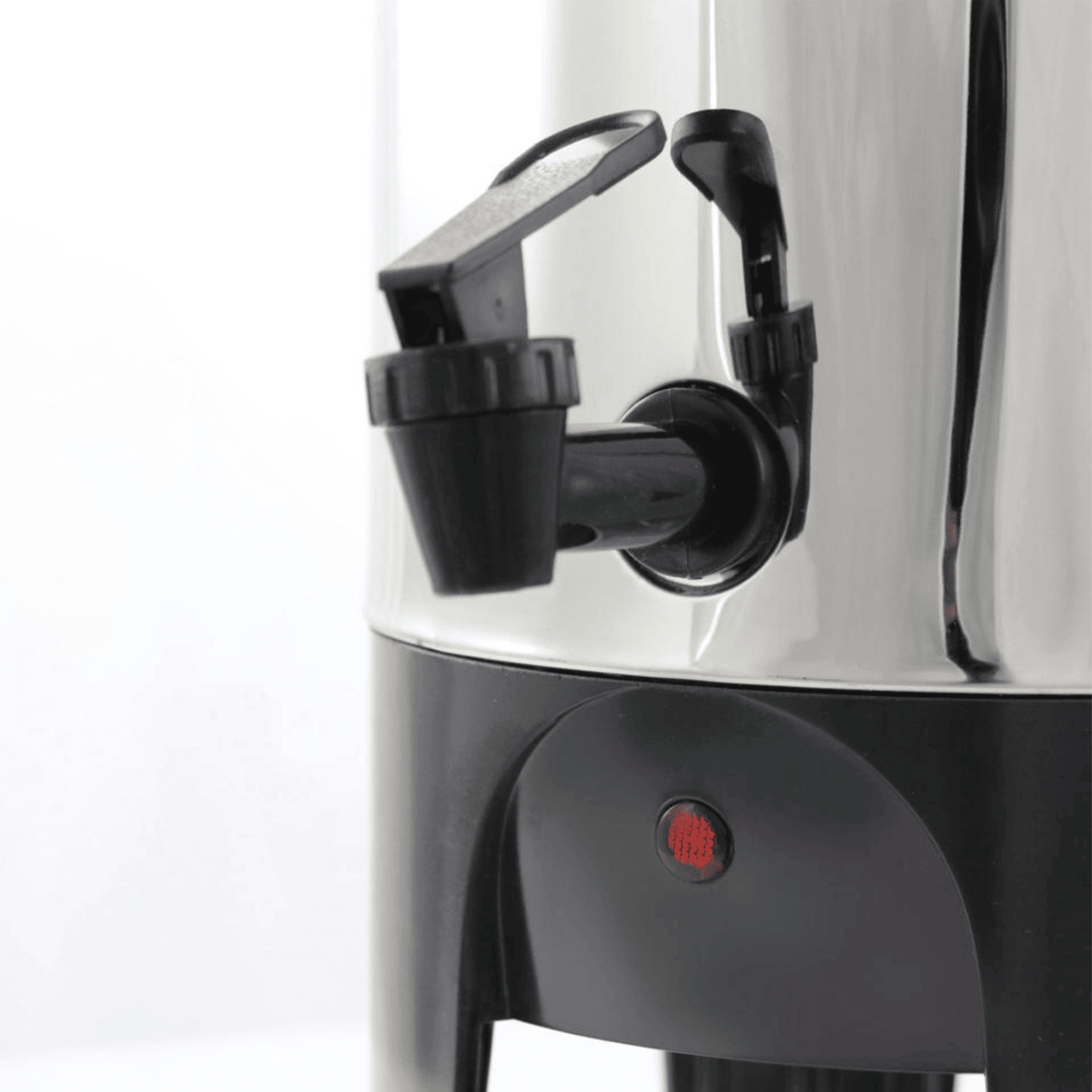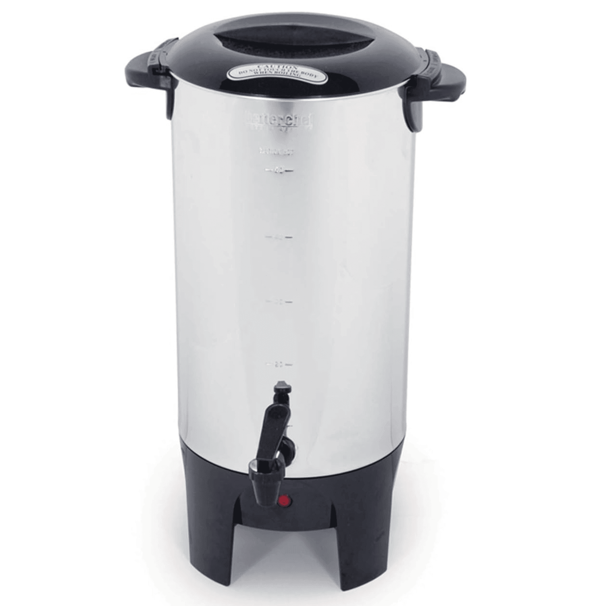 Crafted with stainless steel, this Better Chef 10 to 50 cup coffeemaker and urn promises a fresher tasting brew and simplified cleanup. Its twist-to-lock cover ensures a secure brewing process, while a brew-basket is included for added convenience. Versatility is a hallmark feature, allowing it to prepare coffee, tea, hot water, and hot cocoa. The non-drip spigot ensures mess-free dispensing. With a removable cord, storage and transportation are made effortless. Furthermore, it offers rapid brew functionality, ensuring quick turnaround times for large batches of beverages.