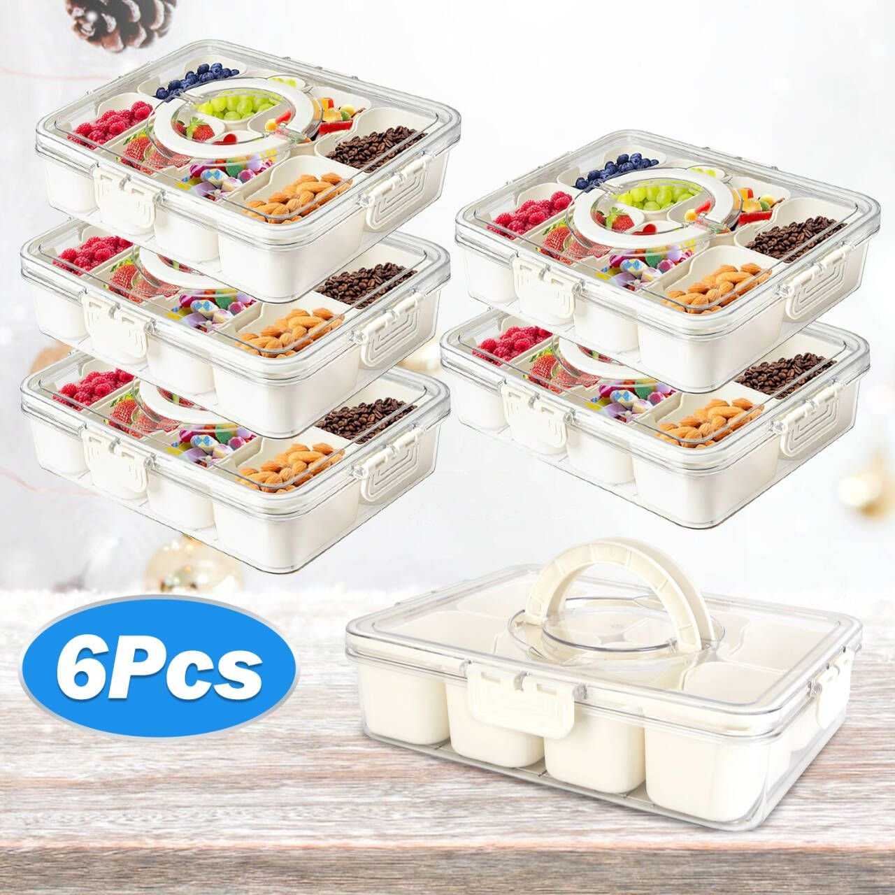 *Portable & Foldable Handles*:The collapsible handle designed on the top of the lid allows you to carry the snackle box anywhere easily. Great for parties,picnics,and entertaining. You can also put it into the refrigerator for storage.