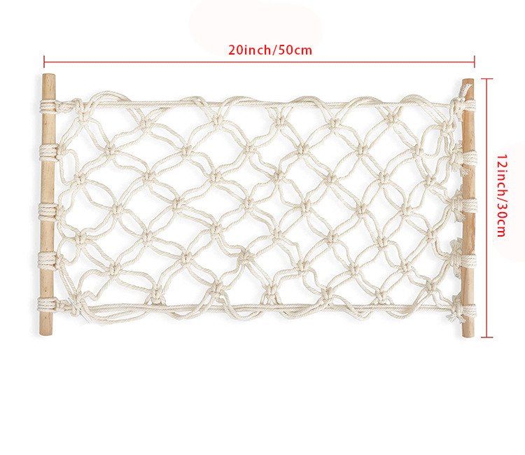 Gray produce basket made of 100% cotton. Two solid wood dowels for structural reinforcement and great kitchen decor for counter. Four hand screw in hooks allows for easy and quick installation. Endless options for hanging fruit baskets for kitchen. Adjustable hanging storage basket. Determine the depth and height of macrame fruit hammock placement that best suits your needs. The spacing of the steel cup hook screws determines how the macrame basket hangs. The shorter the distance between the wood dowels the lower hanging produce basket. Hand screw in the hooks. 100% cotton kitchen baskets for storage are easy to clean. Baskets for kitchen cupboards feature macrame knotting. Under cabinet fruit hammock includes solid wood dowels for extra strength and support for hanging vegetable baskets for kitchen. Our hanging net has larger capacity. Each banana hammock comes with two S hooks for hanging bananas; grapes; garlic nets; tomatoes on the vine. Banana holder and banana hook under cabinet great for space saving kitchen organization. Fruit basket for kitchen works great for nursery; bathrooms; rv storage.