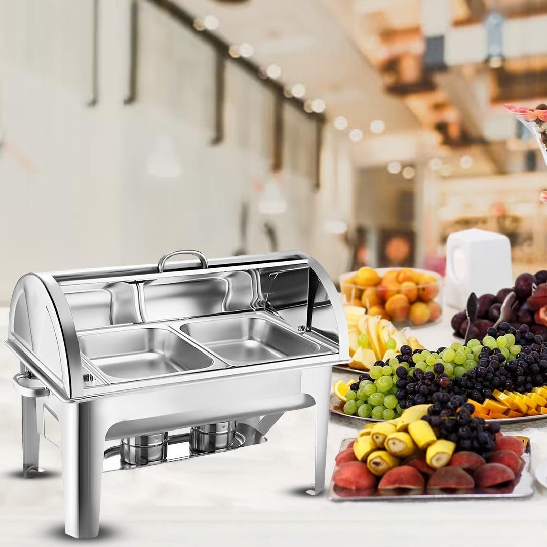 SOGA 4.5L Dual Tray Stainless Steel Roll Top Chafing Dish Food Warmer SOGA 4.5L Dual Tray Stainless Steel Roll Top Chafing Dish Food Warmer SOGA 4.5L Dual Tray Stainless Steel Roll Top Chafing Dish Food Warmer