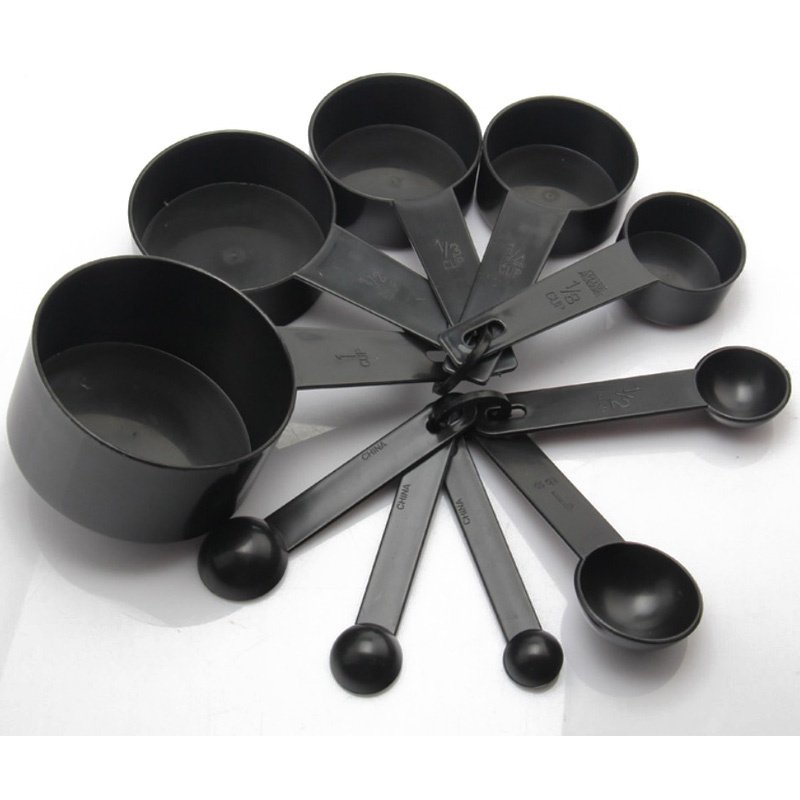Measuring Set 10 pieces Black Plastic Measuring Spoons and Cups for Baking Tools Measuring Set 10 pieces Black Plastic Measuring Spoons and Cups for Baking Tools Measuring Set 10 pieces Black Plastic Measuring Spoons and Cups for Baking Tools