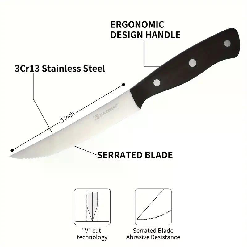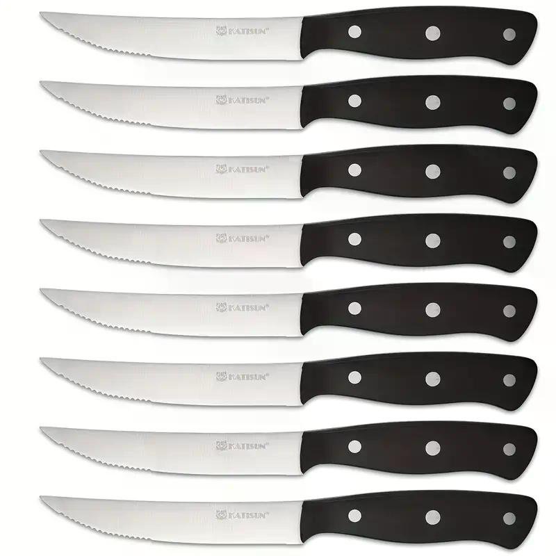 Steak Knives Set of 8, Serrated Steak Knives with POM Three Rivets Handle, Dishwasher Safe, for Family, Party, and Restuarant