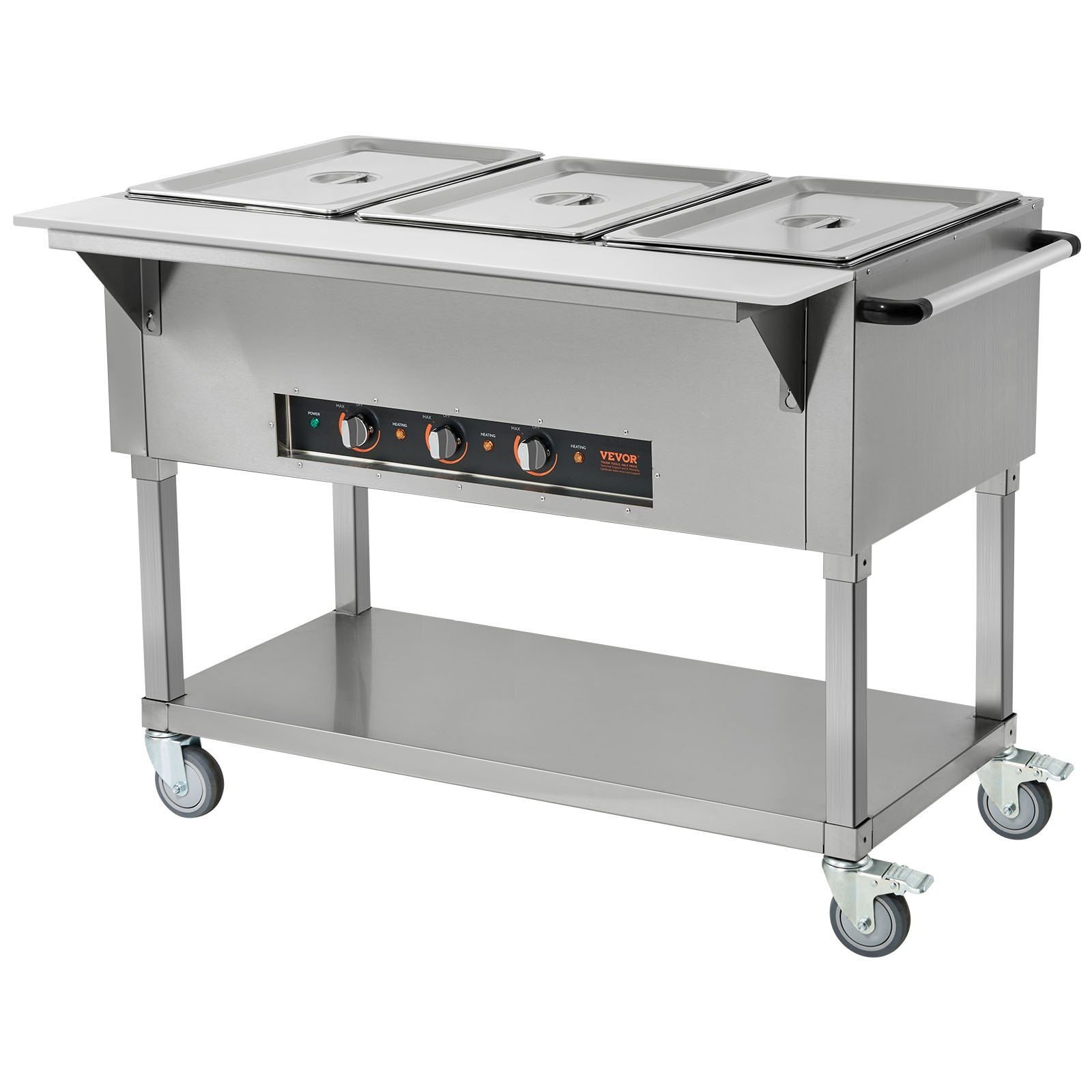 Keep your guests satisfied with piping hot food with VEVOR electric food warmer. Featuring independent heating control and 3 spacious food wells, 1500W efficient heating and effortless mobility, this table ensures that your food stays hot and delicious, delighting your guests with every bite.