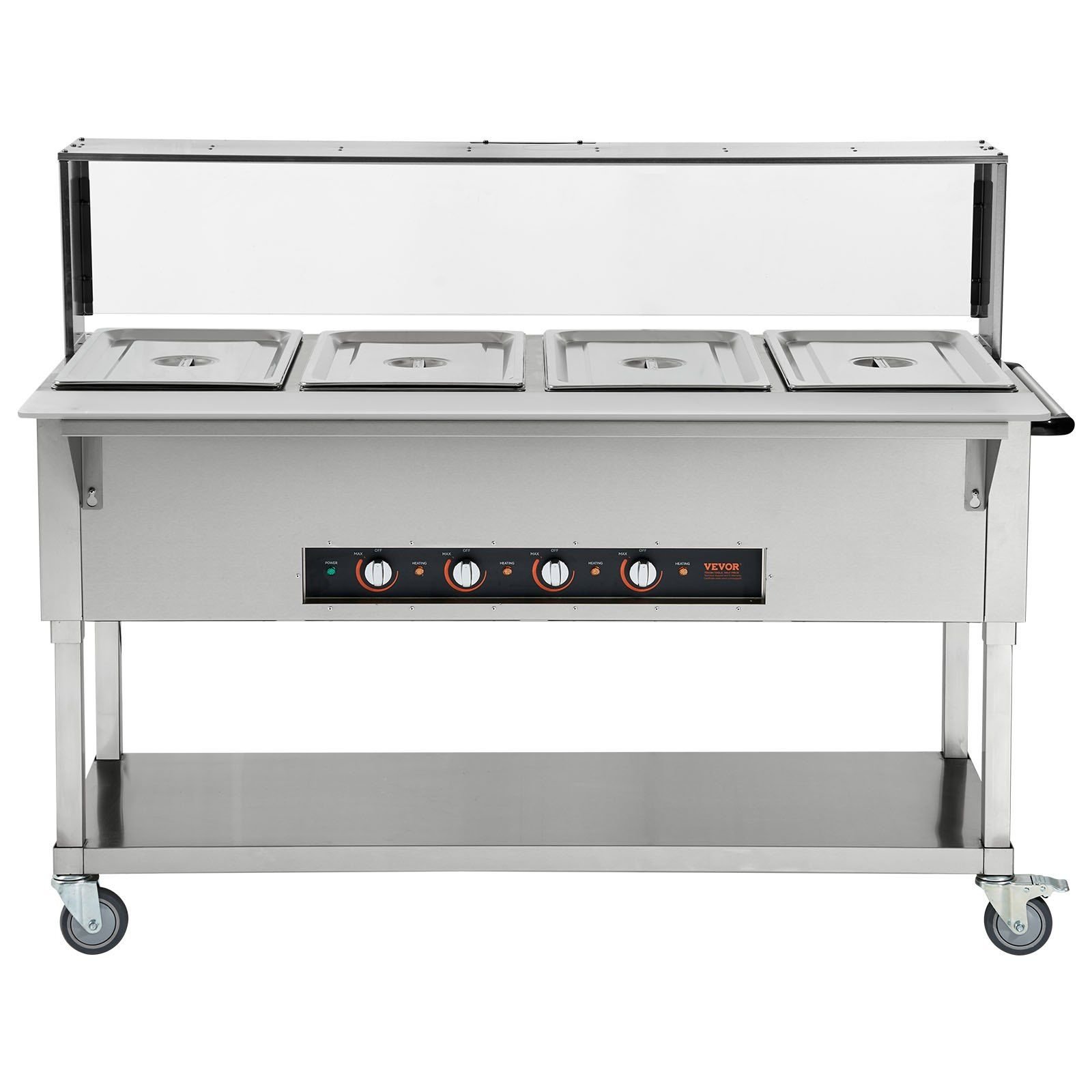 Keep your guests satisfied with piping hot food with VEVOR electric food warmer. Featuring independent heating control and 4 spacious food wells, 2000W efficient heating and effortless mobility, this table ensures that your food stays hot and delicious, delighting your guests with every bite.