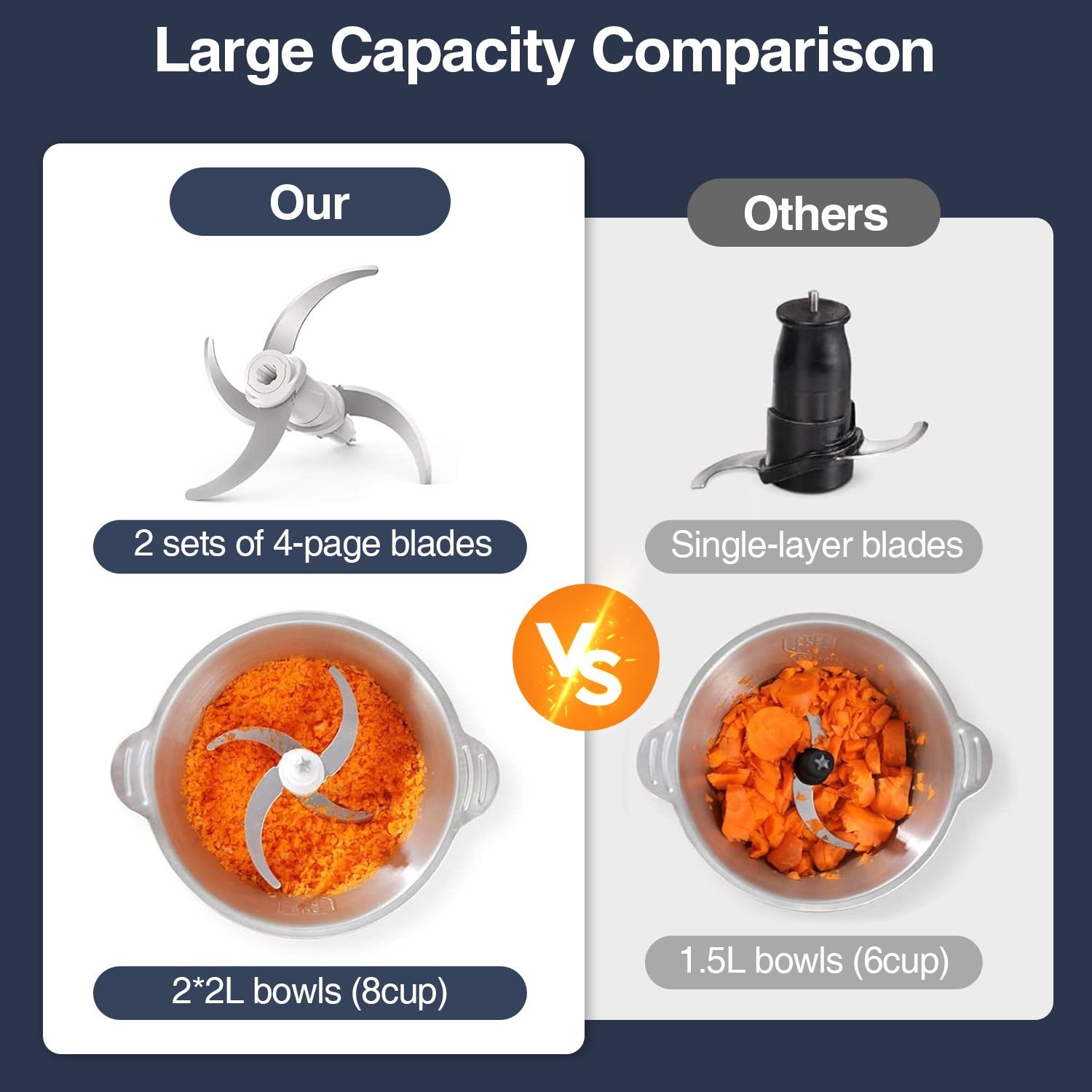 KOIOS 2L Electric Food Chopper Processor Vege Meat Grinder Mixer 2 Bowls 4 Blade