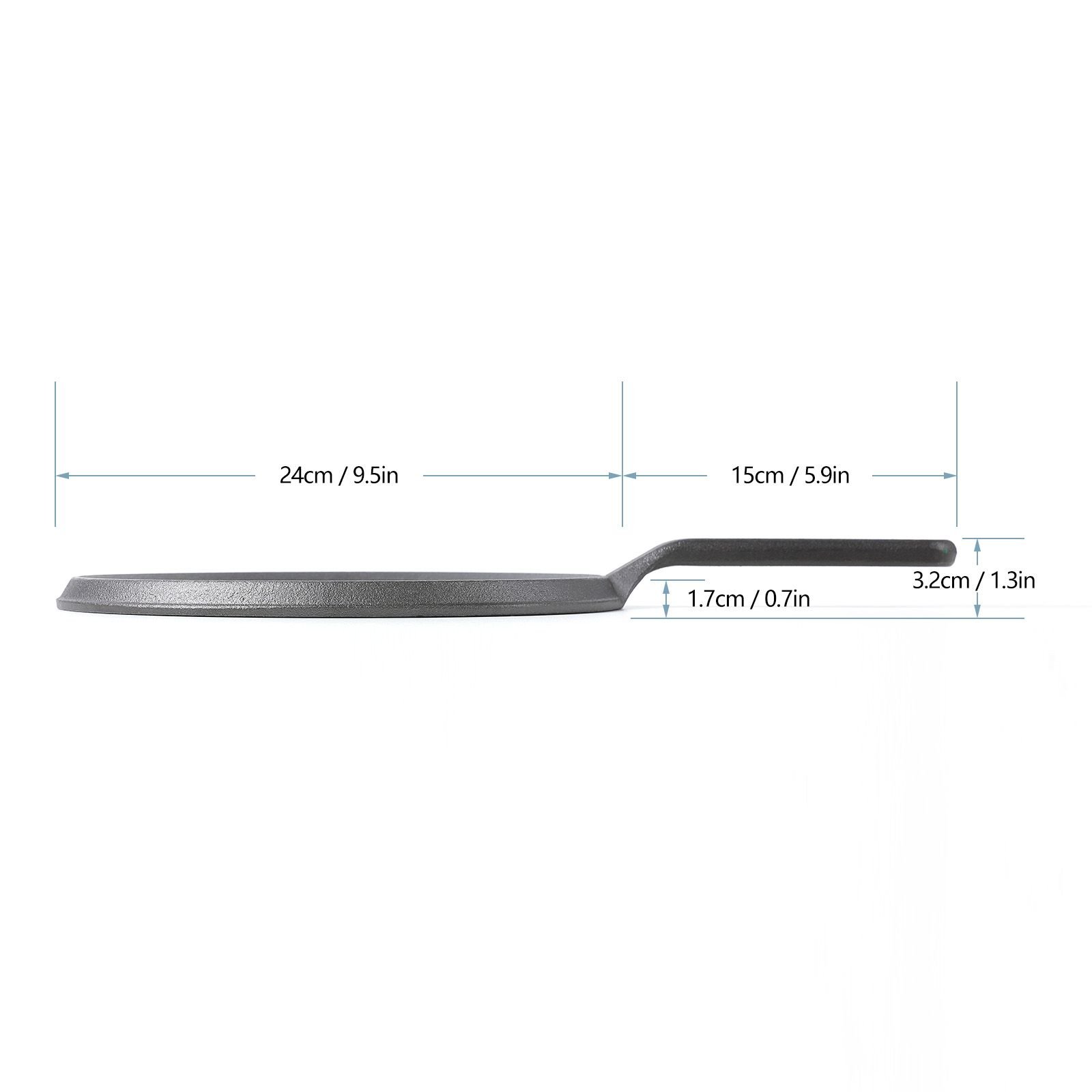 Cast Iron 9.5-inch Griddle is a multi-functional cookware that works wonders with all your favorite foods. This griddle is essential for big breakfasts, tortillas, quesadillas, roasted vegetables and grilled sandwiches.Cast iron loves a campfire, a stove top, or an oven, and can slow-cook foods without scorching. It retains heat well so you can sear meat at higher temperatures and will keep your delicious meals warm for a long time.