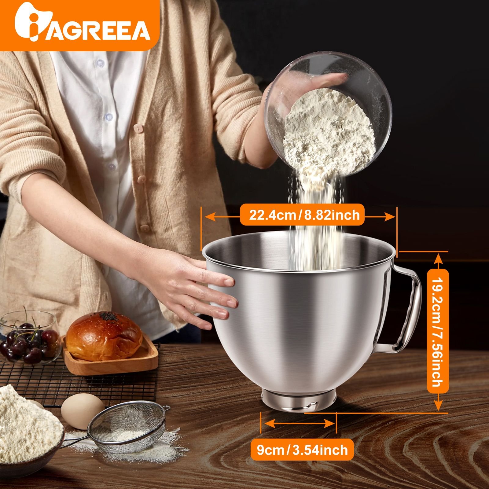 IAGREEA Stainless Steel Mixing Bowl With Handle, Lightweight And Drop Resistant, Suitable For Kitchen Aet Of 4.5QT/5QT Kitchenaid Stand Mixers Models