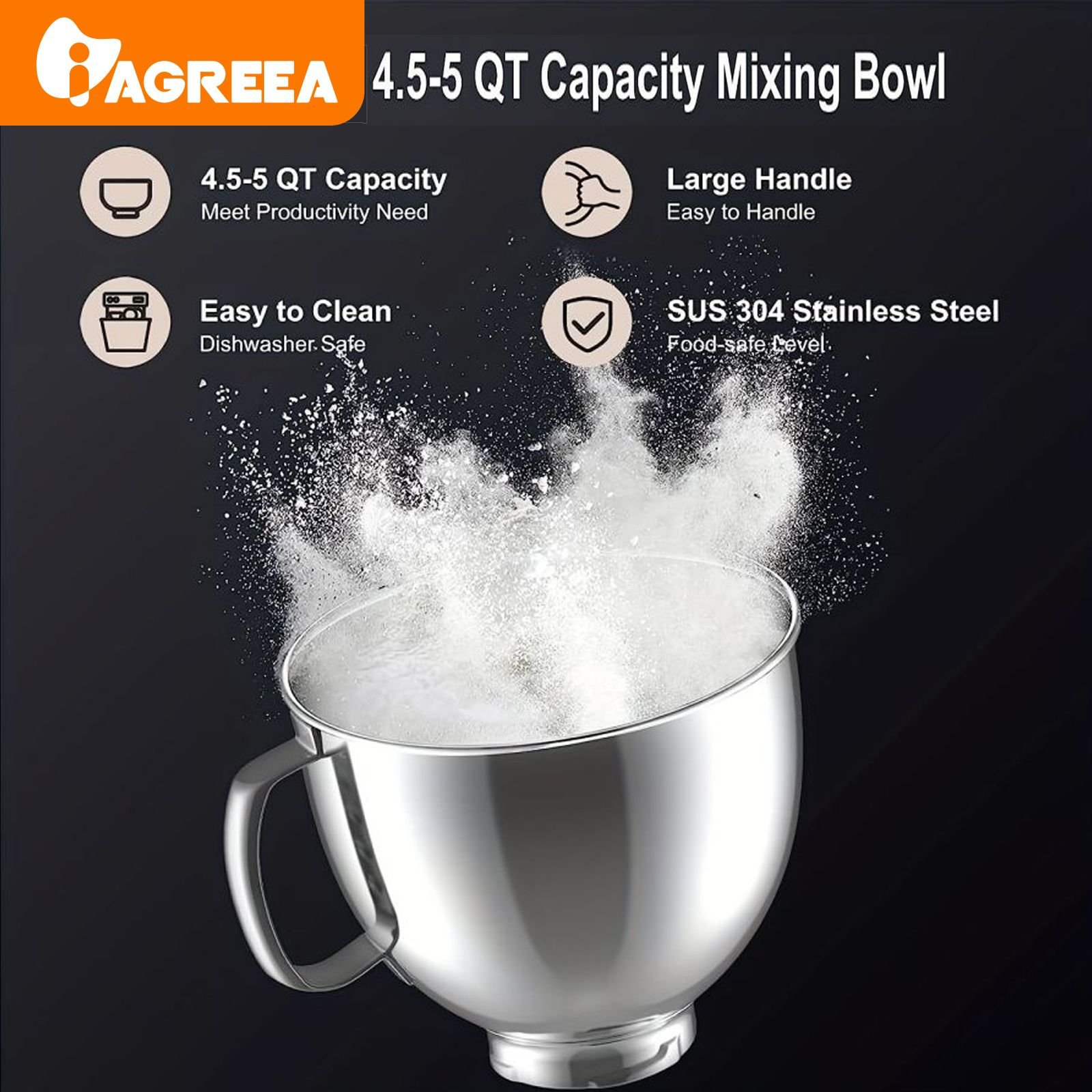 1.Make your cooking easier: IAGREEA 5QT's standard capacity mixing bowl will complement your cooking and make cooking easier.