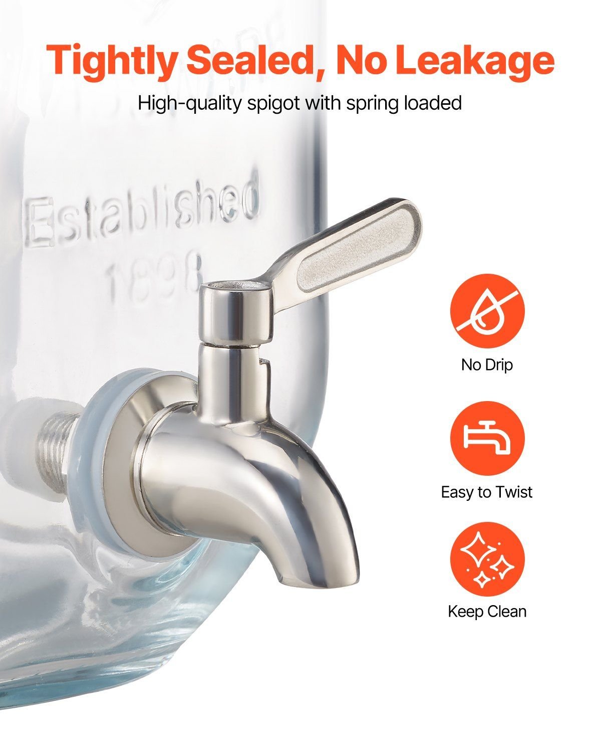 2.No Drip Spigot: Equipped with a tightly sealed stainless steel spigot, the drink dispenser is convenient for dispensing without leakage, so you won't have to worry about cleaning spilled drinks. It helps keep your drink station clean and aesthetic