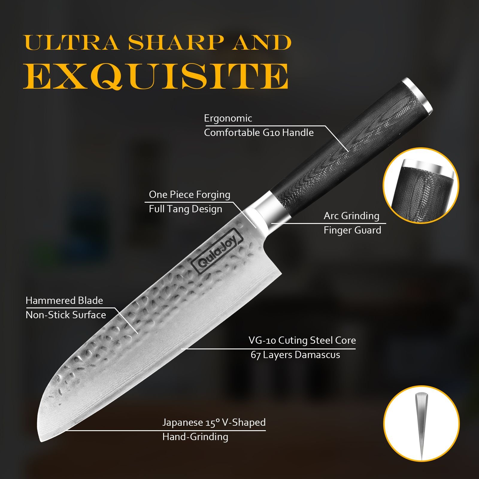 Qulajoy 7 Inch Santoku Knife- Ultra Sharp Japanese 67 Layers Damascus VG-10 Steel Core - Professional Hammered Chef Knife - Ergonomic G10 Handle With Qulajoy 7 Inch Santoku Knife- Ultra Sharp Japanese 67 Layers Damascus VG-10 Steel Core - Professional Hammered Chef Knife - Ergonomic G10 Handle With Qulajoy 7 Inch Santoku Knife- Ultra Sharp Japanese 67 Layers Damascus VG-10 Steel Core - Professional Hammered Chef Knife - Ergonomic G10 Handle With
