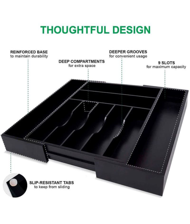 1.Experience neat and clean drawers with this drawer organizer for almost all standard drawer sizes. Perfect fit for 17″ long, 2.38″ deep, and 13.5″ in width and larger. Arrange your utensils smartly with this kitchen utensil organizer!