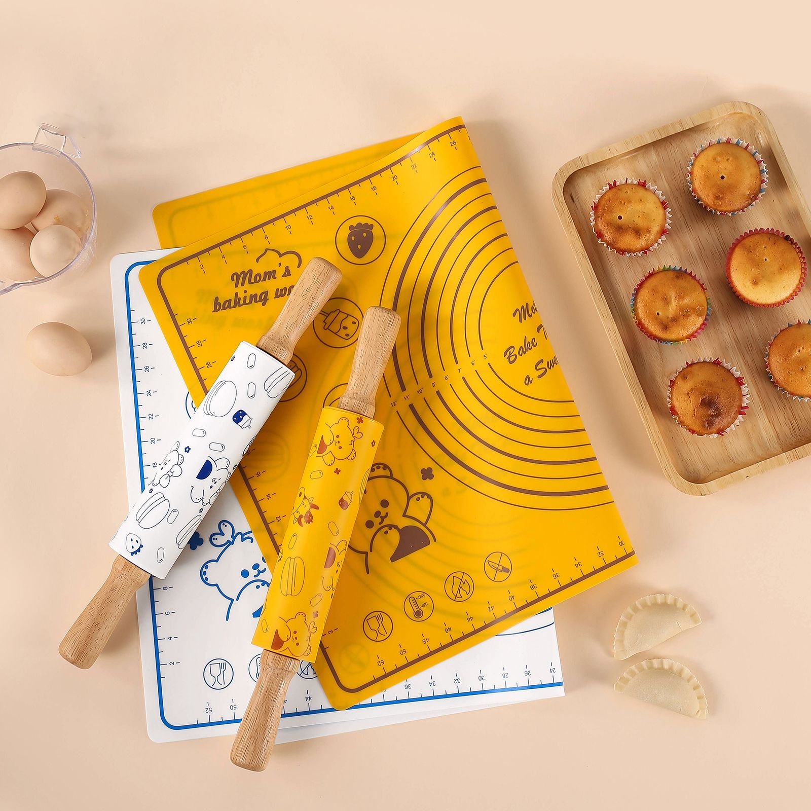 1pc Bear Cartoon Kneading Pad Rolling Pin; Baking Set 1pc Bear Cartoon Kneading Pad Rolling Pin; Baking Set 1pc Bear Cartoon Kneading Pad Rolling Pin; Baking Set