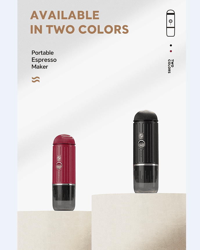 LIGHTWEIGHT AND CONVENIENT TO CARRY: Our rechargeable coffee machine body is made of aluminum alloy, it can be easily compatible with the cup holders of more A0-class cars on the market, so that you can enjoy coffee on the go, whether you are on a business trip, traveling or camping.