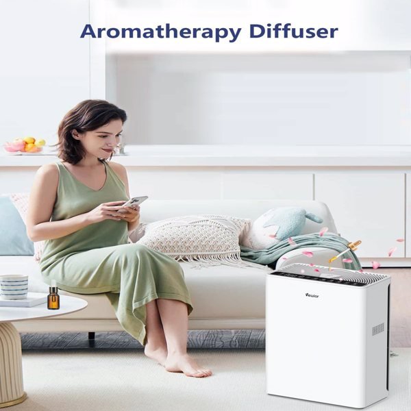 • [Fragrance Sponge & Washable filter cover] The top of the air purifier is equipped with an essential oil cotton pad, you can drop your favorite essential oil, which can help you sleep or refresh yourself. The washable filter cover can be washed directly with water.